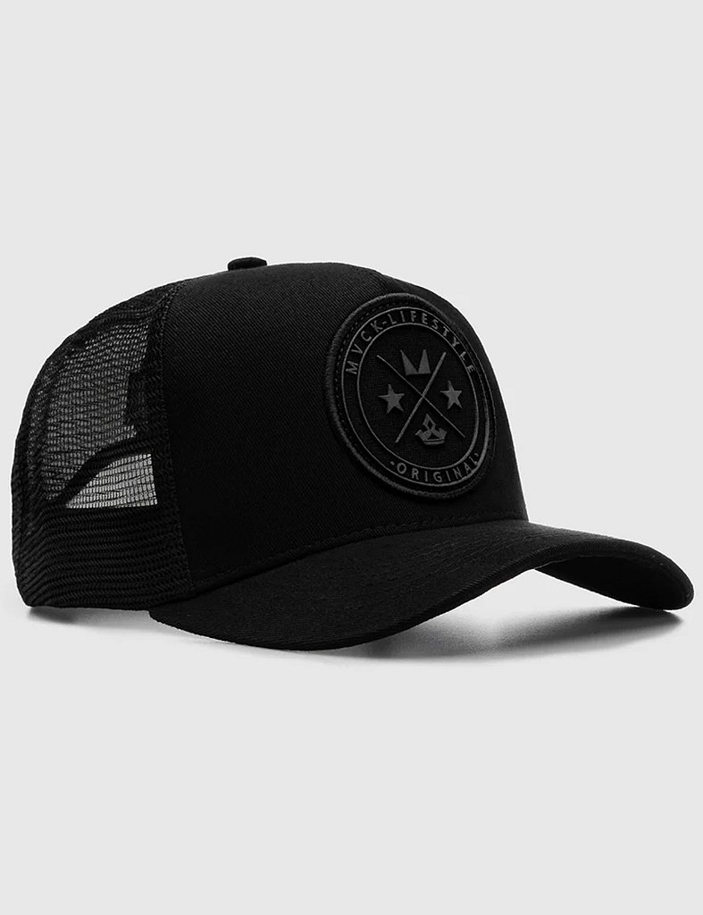 Boné Trucker Brasão All Black MVCK confeccionado em tecido brim algodão na parte frontal (aba e testa) e poliéster na tela.✓