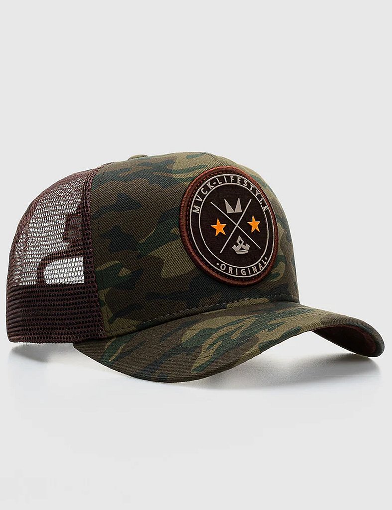 ✓ Boné Madrid Camuflado MVCK. Confeccionado em tecido camurça na parte frontal (aba e testa) e poliéster na tela.