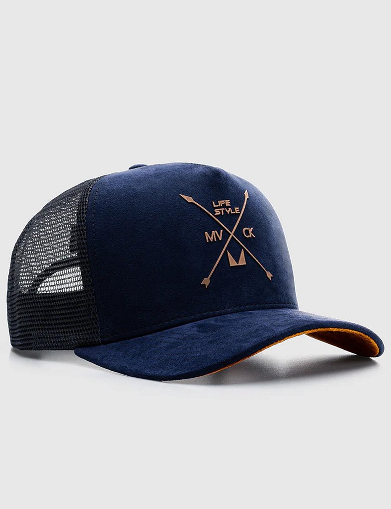 Logo emborrachada sobreposta ao boné com acabamento premium.
