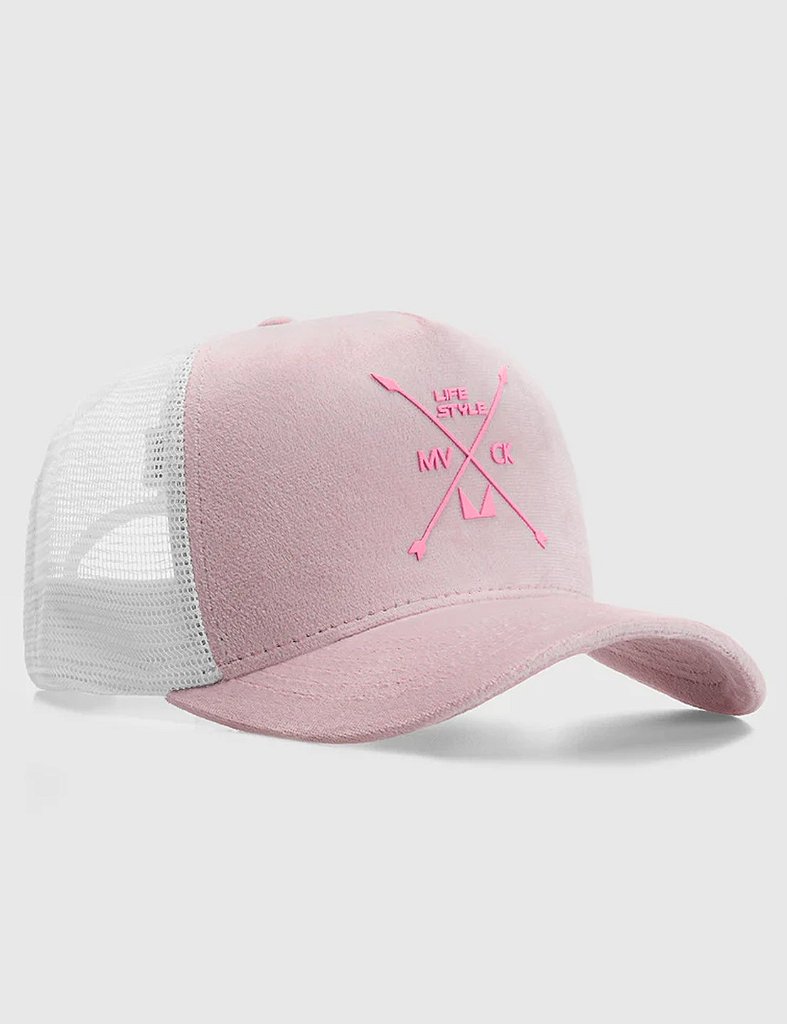 Logo emborrachada sobreposta ao boné com acabamento premium.