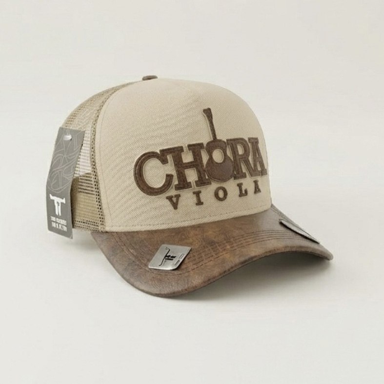 Design Exclusivo: Bordado frontal em alto relevo com a frase "Chora Viola" e o ícone do violão, simbolizando a alma do sertanejo.